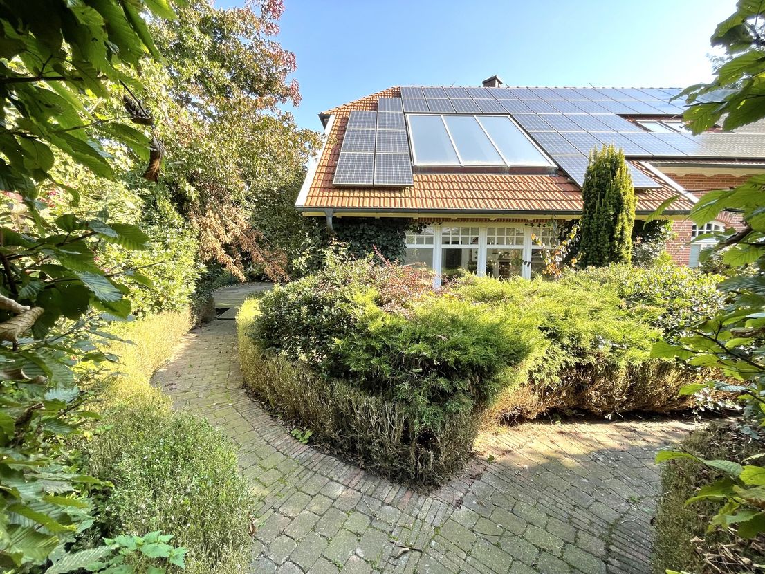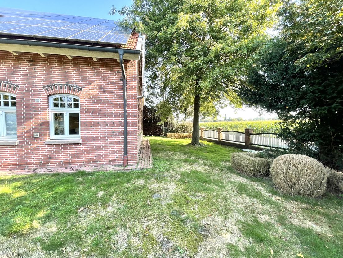 Das großzügige Grundstück bietet ausreichend Rangier und Stellflächen. Hinter Haus und Halle befindet sich ein geschützter Gartenbereich, der von außen kaum einsehbar ist und zusätzlichen privaten Rückzugsraum bietet.