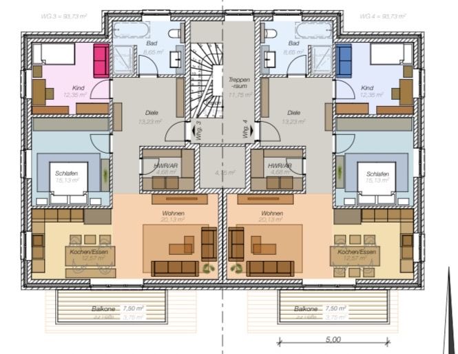 Das geplante Gebäude bietet eine Gesamtwohnfläche von etwa 400 Quadratmetern. Die sechs Wohnungen verfügen über durchdachte Grundrisse mit großzügigen Wohn und Essbereichen sowie Balkonen oder Terrassen. Die geplante Größe der Einheiten eignet sich sowohl für eine klassische Vermietung als auch für eine Nutzung als Ferienwohnungen.